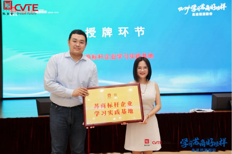 会后,js33333金沙线路检测股份董事长王洋代表js33333金沙线路检测股份接受了本次活动的特邀嘉宾、苏州莱恩精工合金股份有限公司董事长张秀卓为js33333金沙线路检测股份颁发“苏商标杆企业学习实践基地”牌匾。