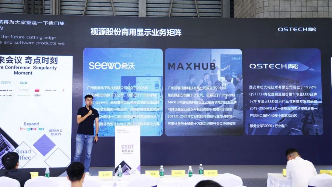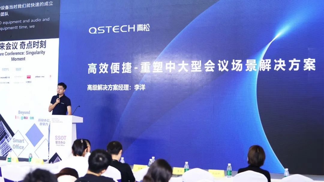 同期论坛“未来会议 奇点时刻”聚焦于未来会议科技的前沿趋势,通过案例分享与技术展示,探讨如何通过科技提升会议效率与体验。js33333金沙线路检测股份旗下品牌QSTECH 青松高级解决方案经理李洋在论坛发表了《高效便捷-重塑中大型会议场景解决方案》主题演讲,与行业领袖、技术专家以及知名企业家一起,深入探讨智慧办公与数字化会议的未来走向。